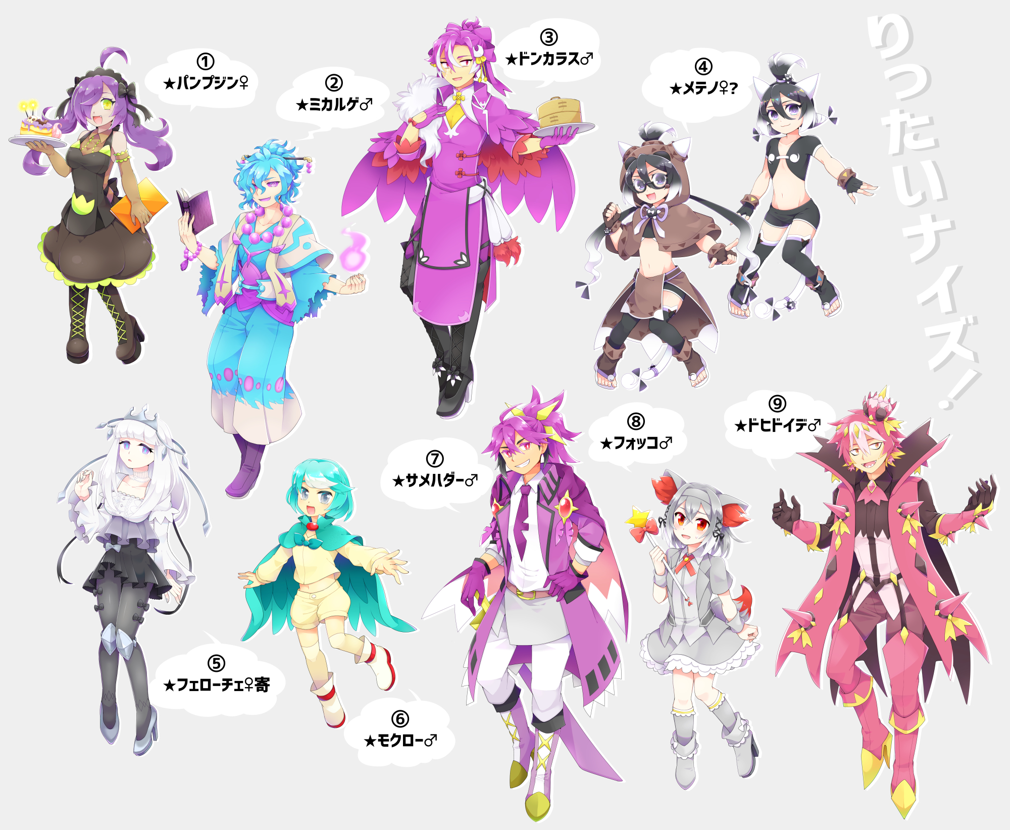 (*参加者の方に主催が描きそうなキャラをデザインして頂いてどれが本当に主催がデザインしたキャラかを当ててもらうという企画)